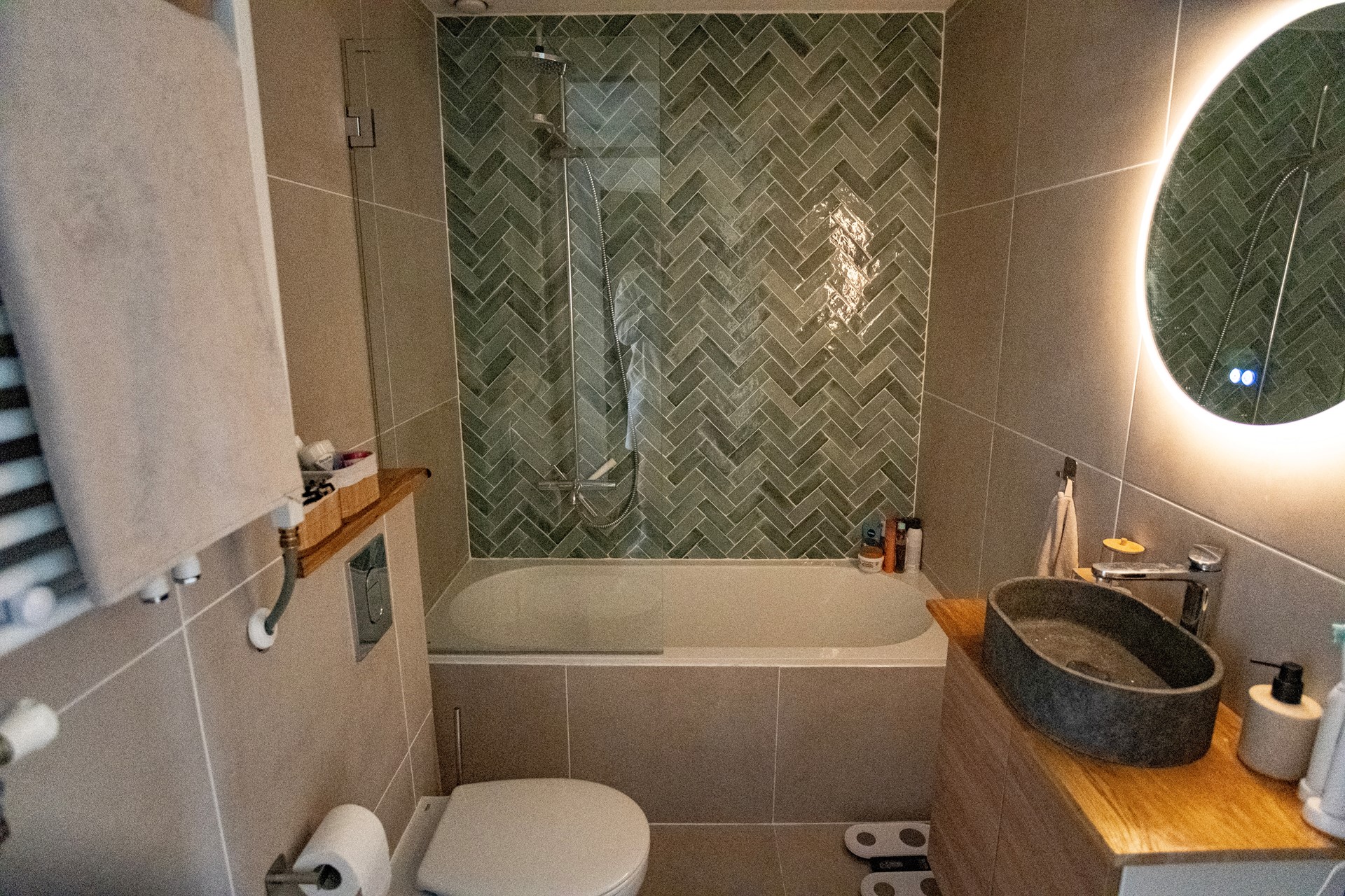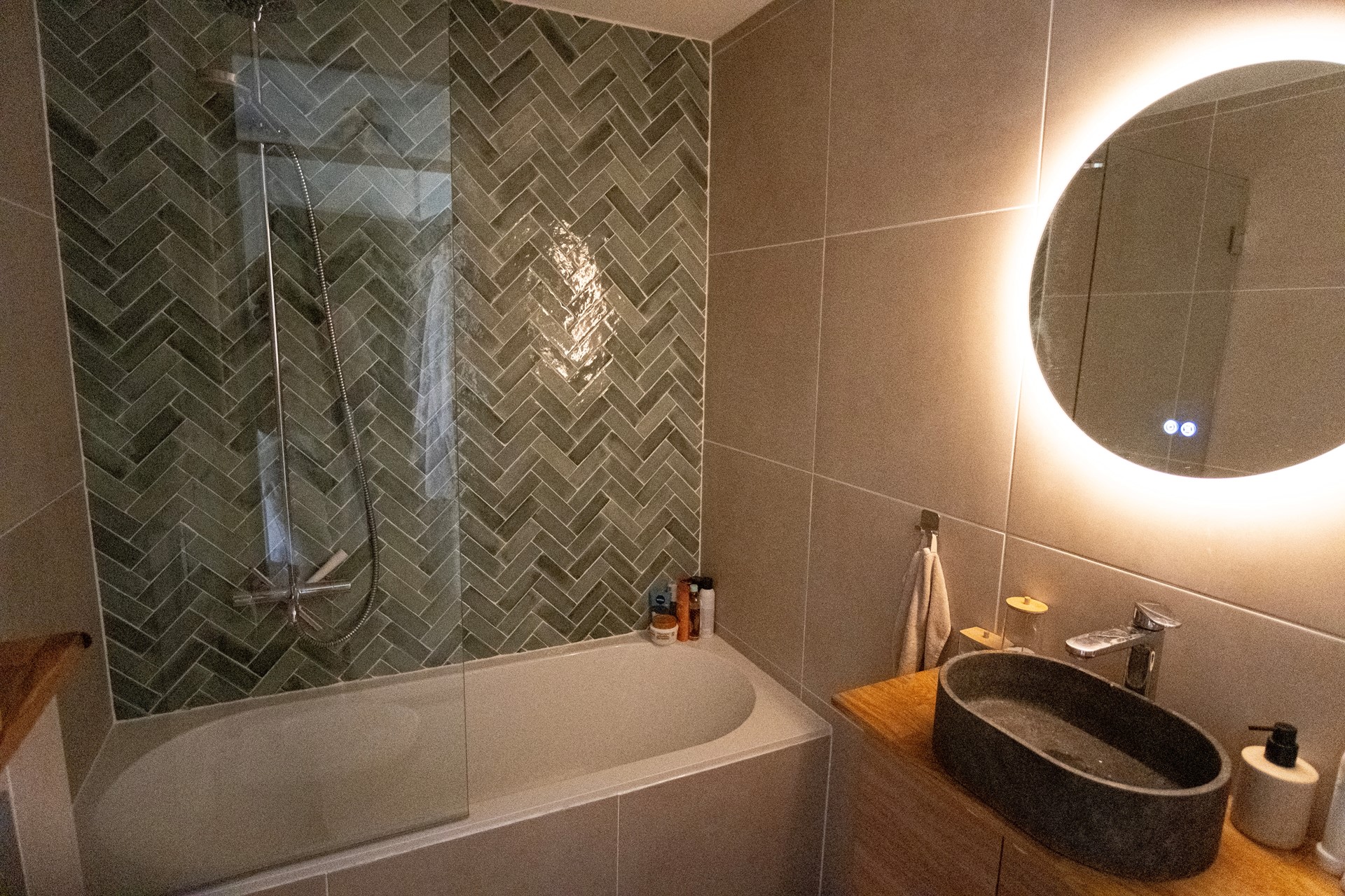 The first floor offers four bedrooms in total. At the front are two smaller rooms, ideal as children's bedrooms, a home office, or walk-in closet. At the rear are two generous bedrooms overlooking the garden. The recently renovated bathroom features a bathtub with shower, a stylish vanity, and a fresh, modern look.