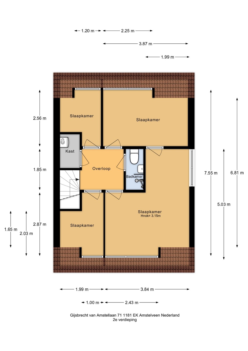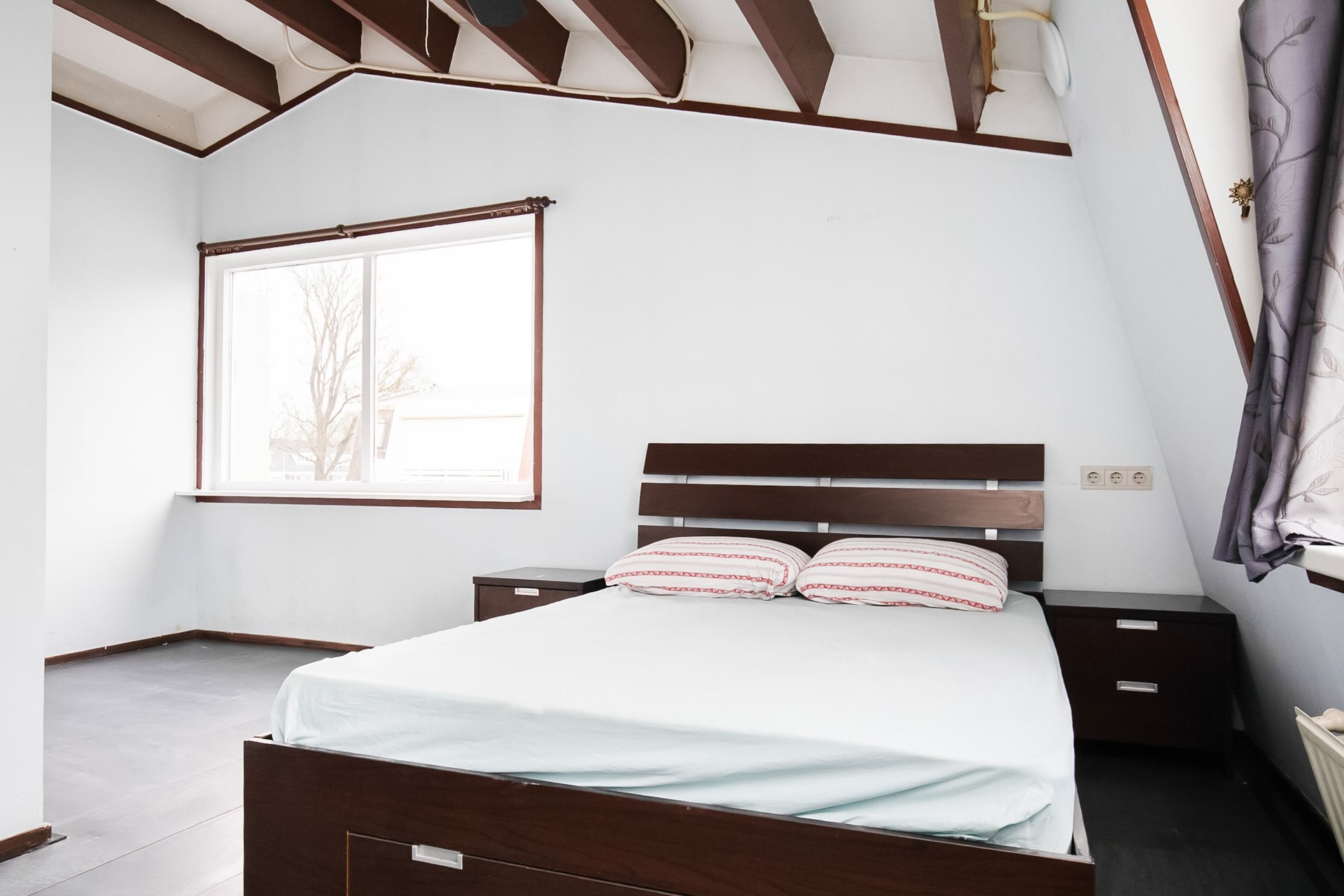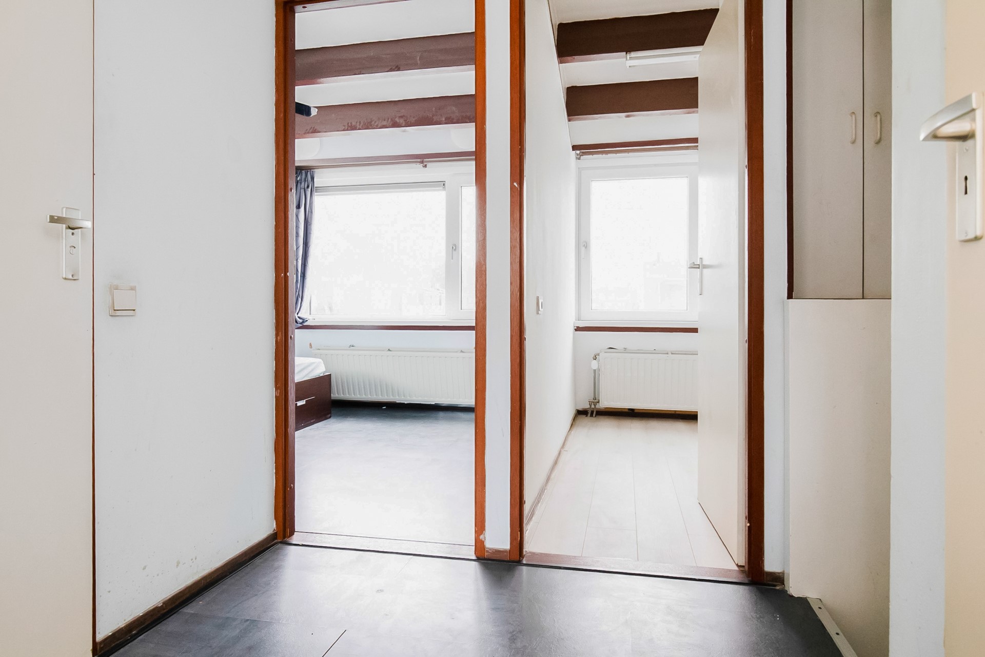 De overloop geeft toegang tot drie ruime slaapkamers. Oorspronkelijk waren dit vier kamers; door samenvoeging zijn er nu drie royale slaapkamers gerealiseerd.