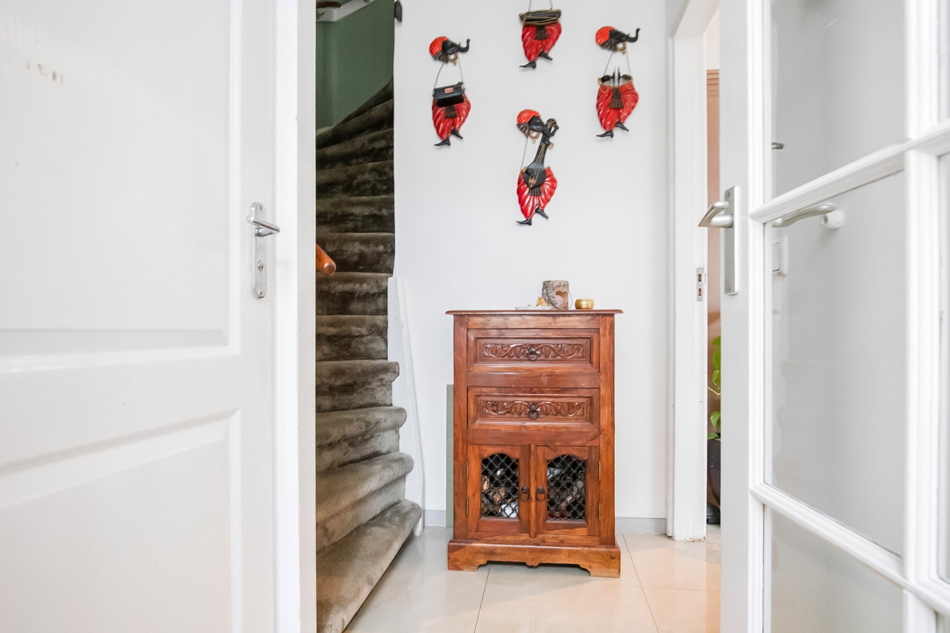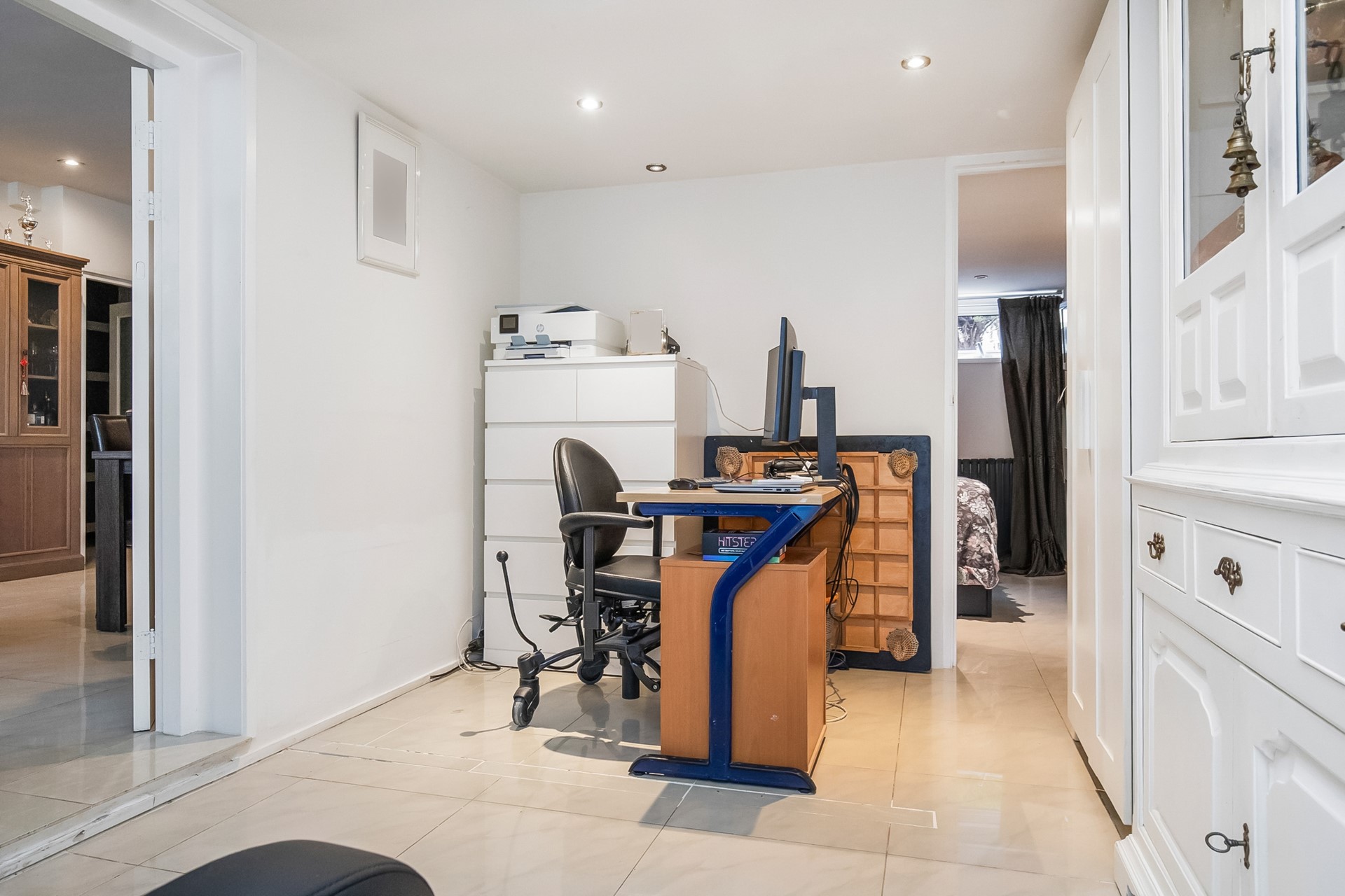 Entrance hall with meter cupboard, staircase and separate toilet. The hall provides access to the spacious and bright living room. Open kitchen is generously sized and practically arranged and offering good workspace, storage and includes built-in appliances. From the living you can reach one of the bedrooms which has a toilet attached. On the other side, attached to the house you will have an office room (official) with own entrance from the street. As well you will find another (bed)room and bathroom. key advantage is the presence of a ground-floor bedroom, making the property ideal for senior family members or multi-generational living.