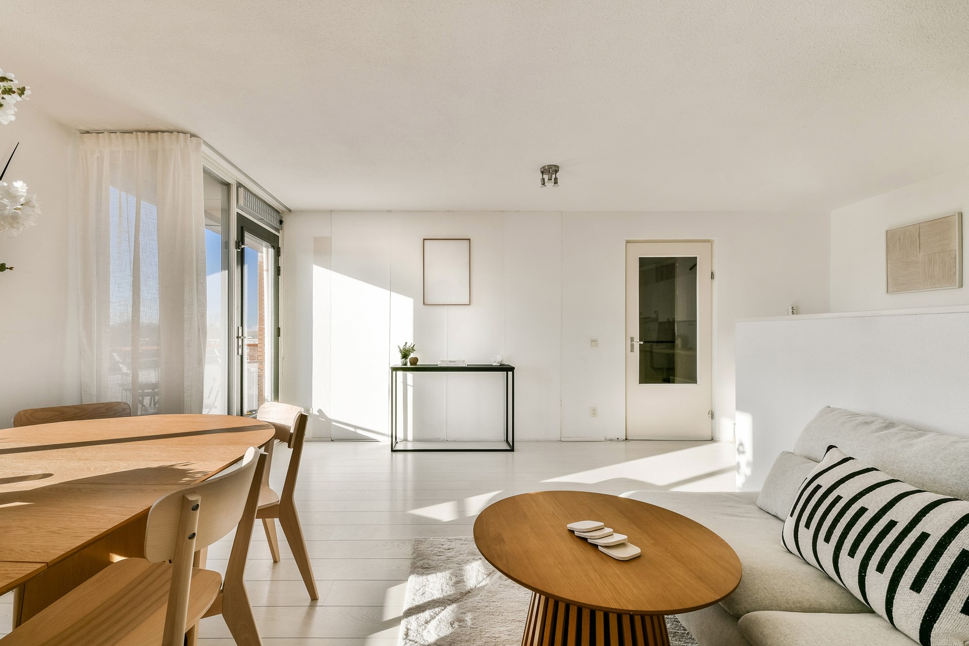 Upon entering, you step into a hallway with space for a wardrobe. From here, you have access to the various rooms.