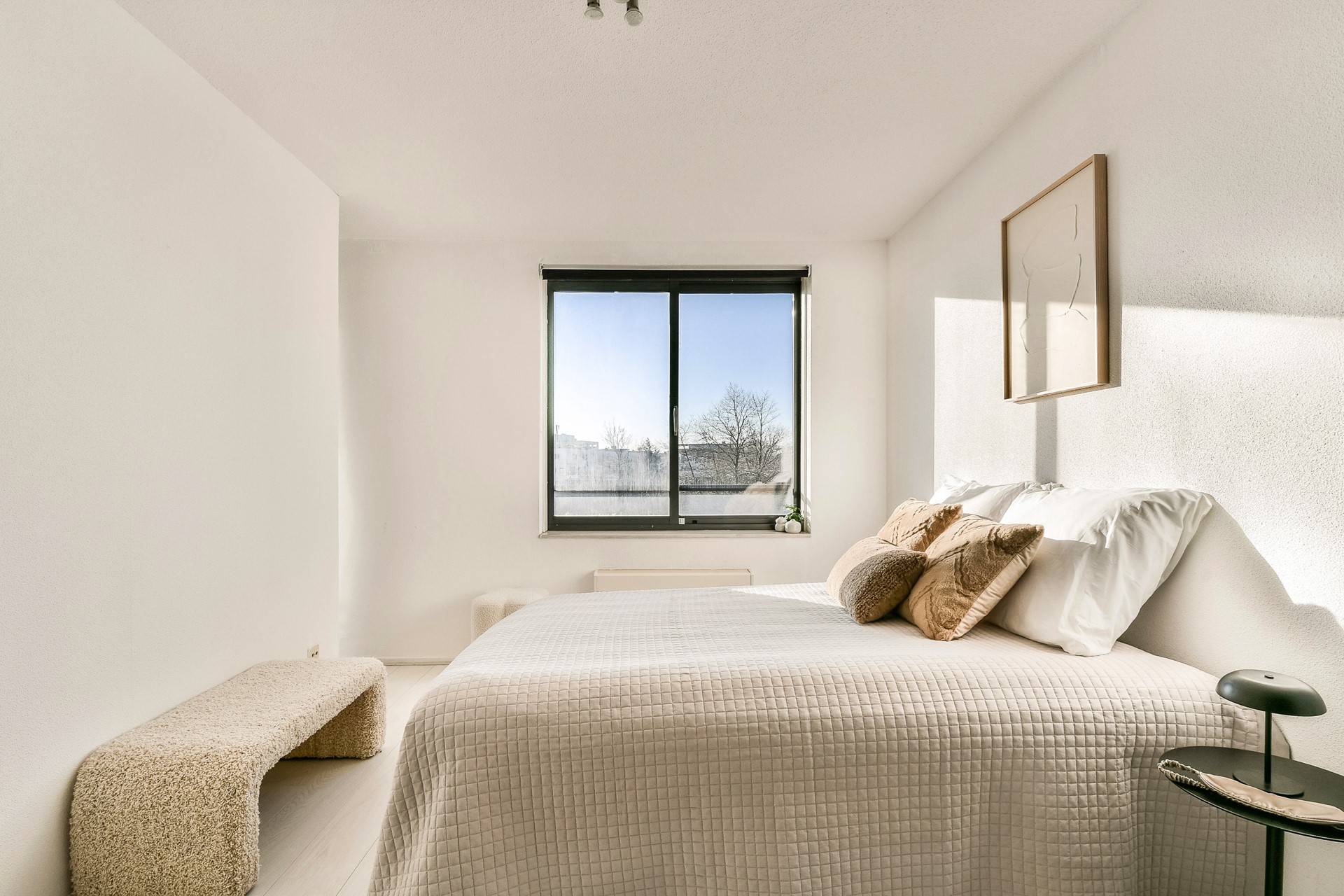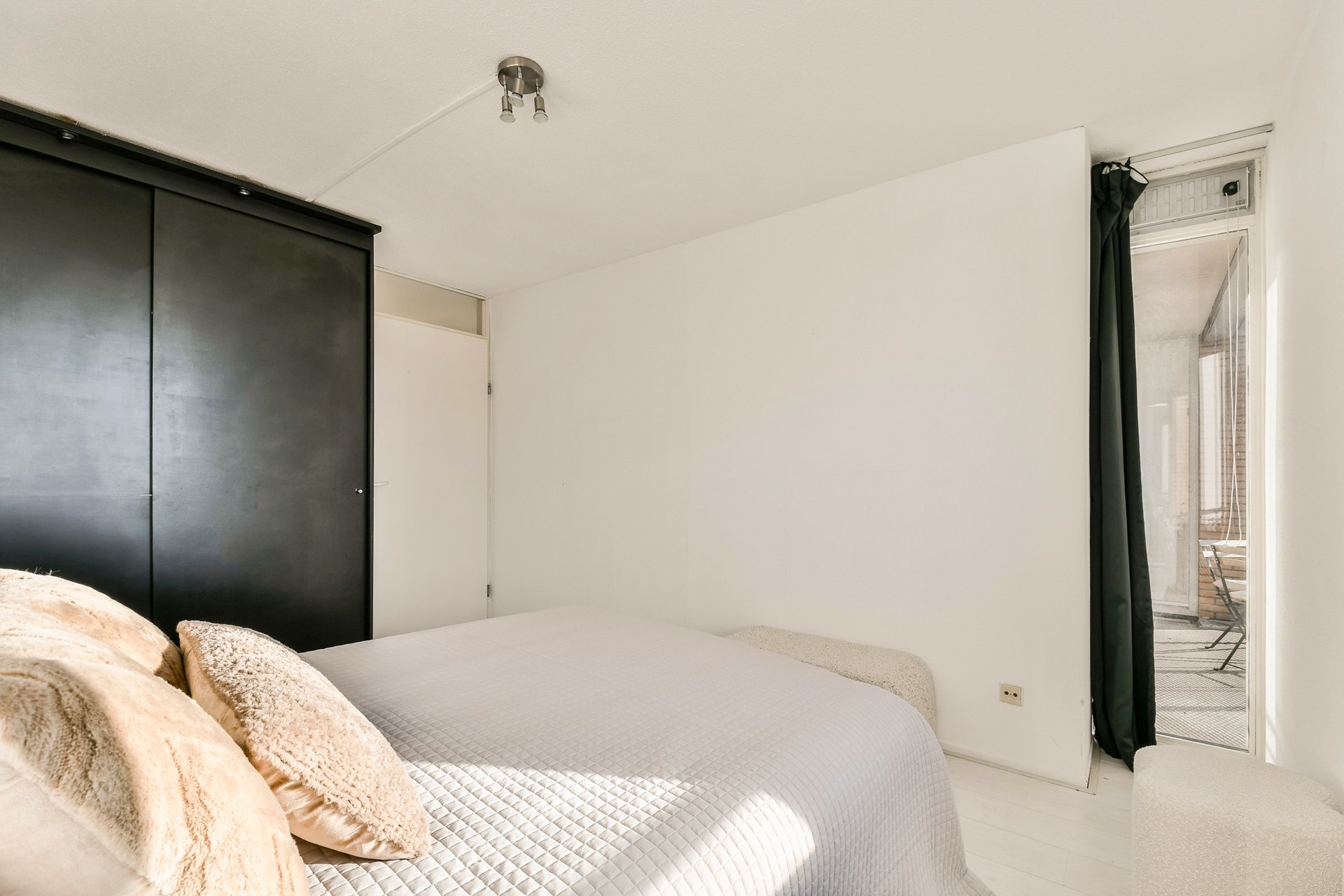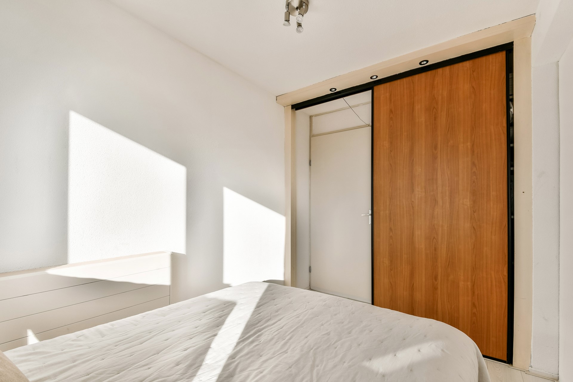 Aan het einde van de gang bevindt zich de ruime hoofdslaapkamer, voorzien van een inbouwkast.