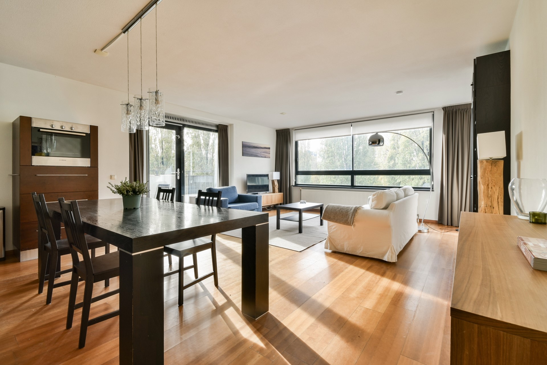 De riante en lichte woonkamer is zonder twijfel het hart van het appartement. Dankzij de grote raampartijen valt het daglicht rijkelijk naar binnen en geniet je van een prachtig, vrij uitzicht over het Koninklijk Wilhelminapark. Vanuit de woonkamer bereik je direct het zonnige balkon op het zuiden, een heerlijke plek voor een kop koffie in de ochtendzon of een ontspannen borrel in de avond.