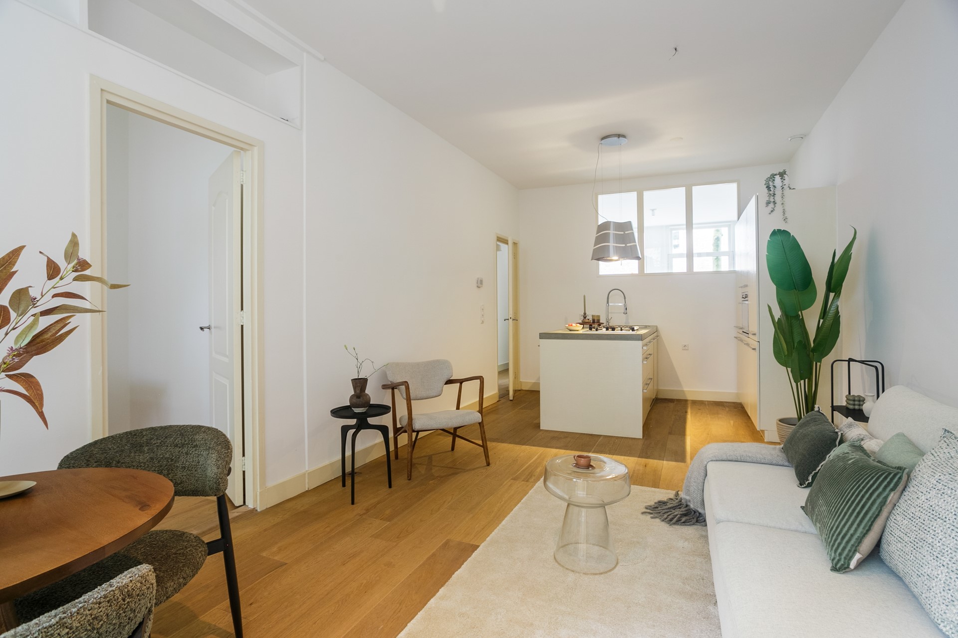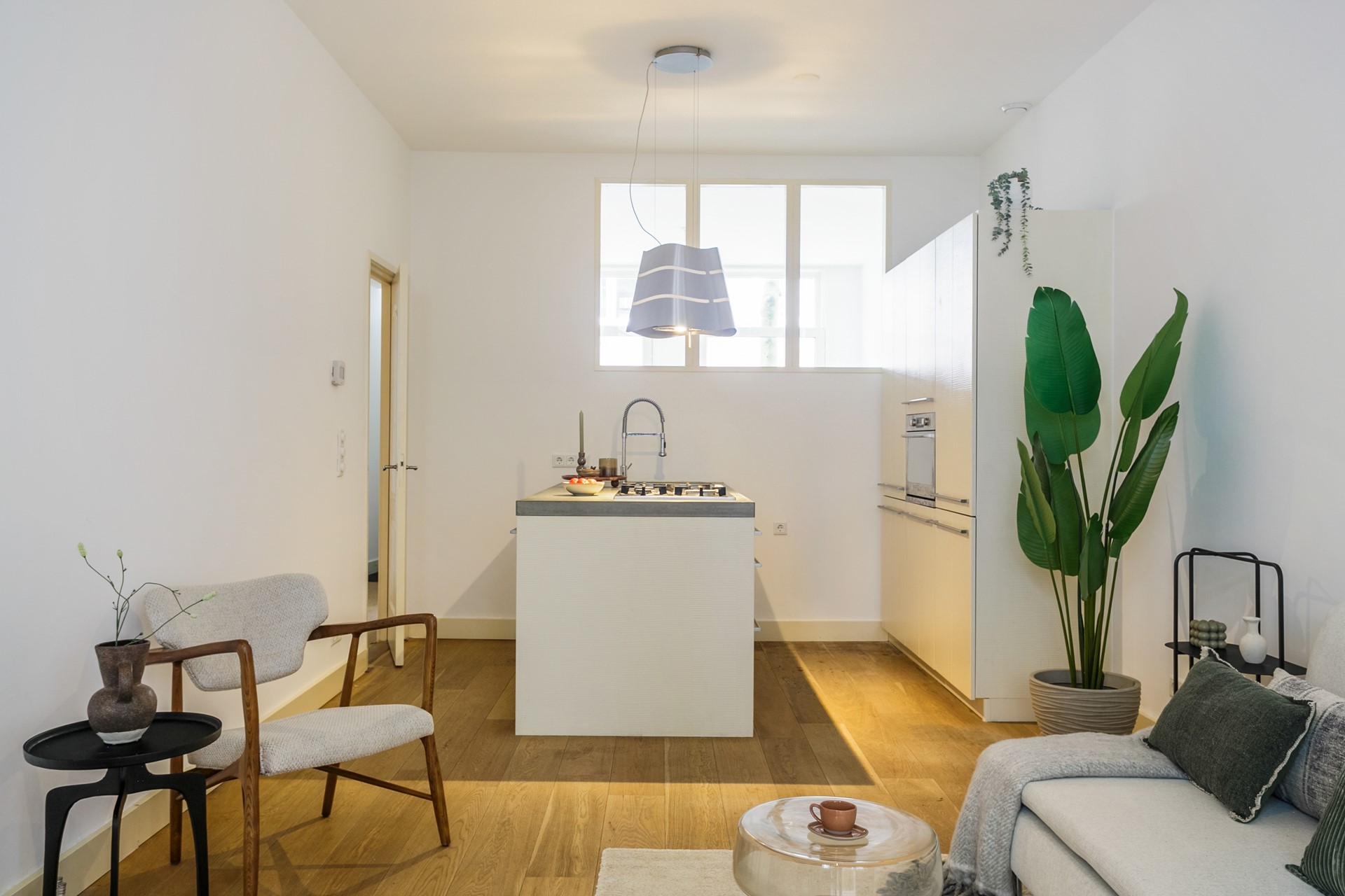 Dit charmante appartement is efficiënt en praktisch ingedeeld. Aan de voorzijde bevindt zich een ruime en rustige slaapkamer, terwijl aan de achterzijde de woonkamer in verbinding staat met de open keuken. Dankzij de openslaande deuren stap je vanuit de veranda zó je achtertuin in – een heerlijke plek om te ontspannen of gezellig te borrelen met vrienden. Ook de tweede kamer, ideaal als werk- of logeerkamer, ligt aan de tuinzijde.