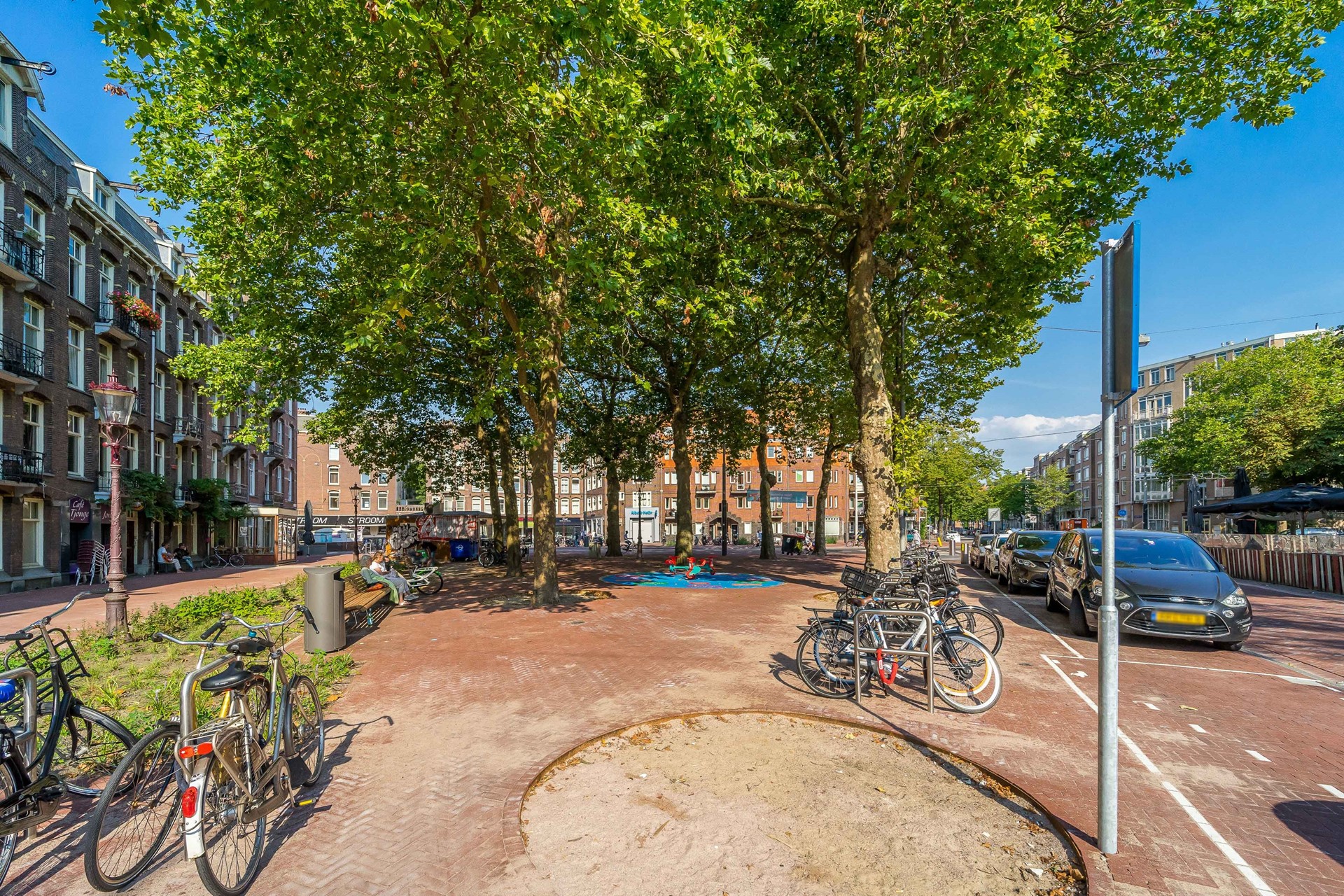 Accessibility is excellent. The North/South metro line is only a few minutes’ walk away and takes you directly to either Amsterdam Central Station or Station Zuid (WTC) within minutes. Tram line 12, running through Ferdinand Bolstraat, is also nearby. The city center can be reached within a few minutes by bike, and the Ring A10 motorway is easily accessible via several main roads.