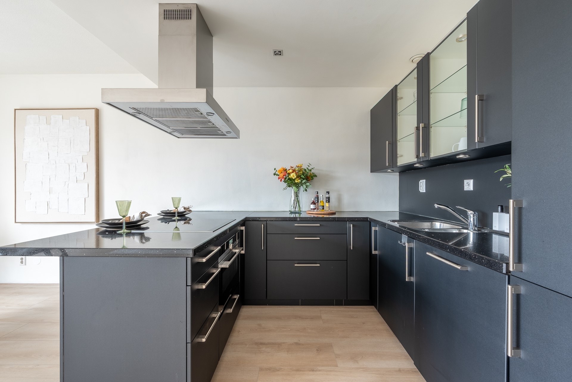 Bij binnenkomst tref je een ruime hal met toegang tot alle vertrekken. De royale woonkamer, over de gehele breedte van het appartement, biedt volop ruimte en is smaakvol afgewerkt met een moderne open keuken voorzien van diverse inbouwapparatuur. Aan de voorzijde bevinden zich twee ruime slaapkamers, ideaal als hoofdslaapkamer en een extra kamer voor gasten, werk of hobby. De vernieuwde badkamer springt eruit door de luxe en moderne afwerking, voorzien van een ruime inloopdouche en stijlvol wastafelmeubel. Daarnaast is er een separaat toilet en een praktische berging met aansluiting voor een wasmachine.