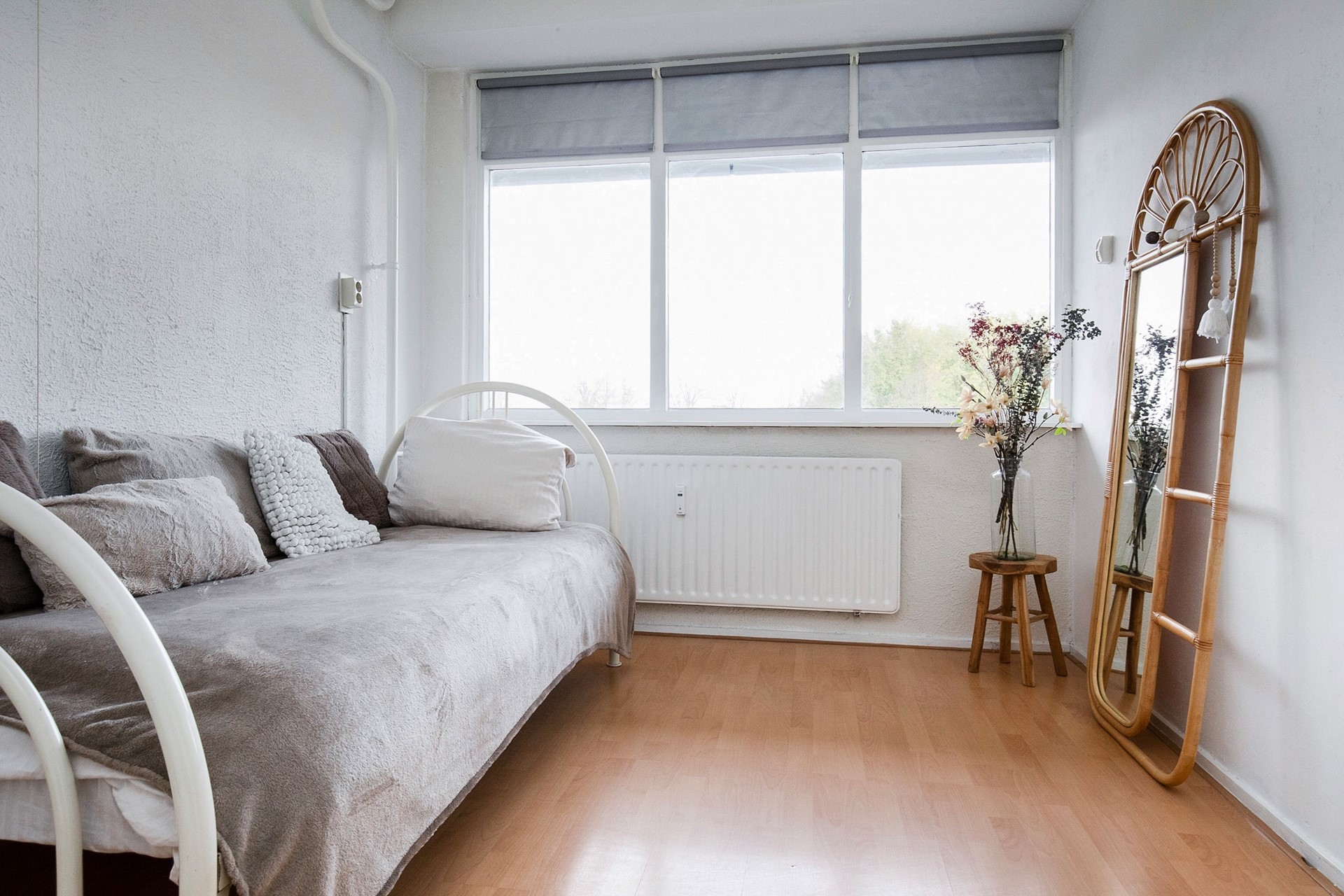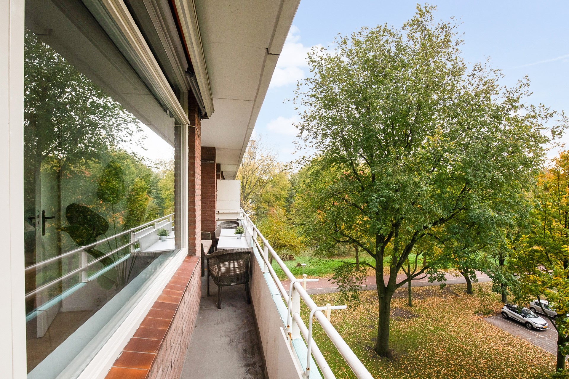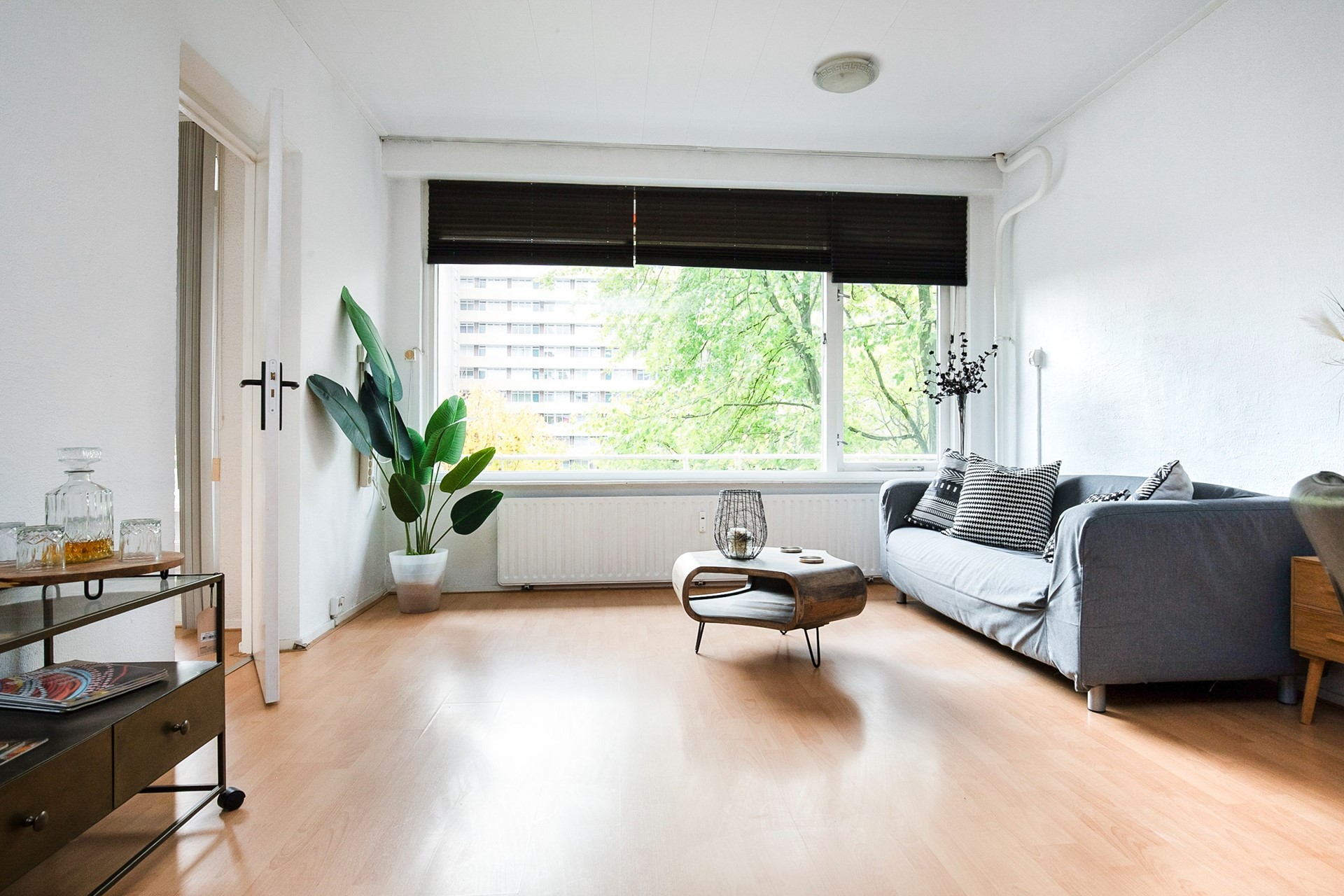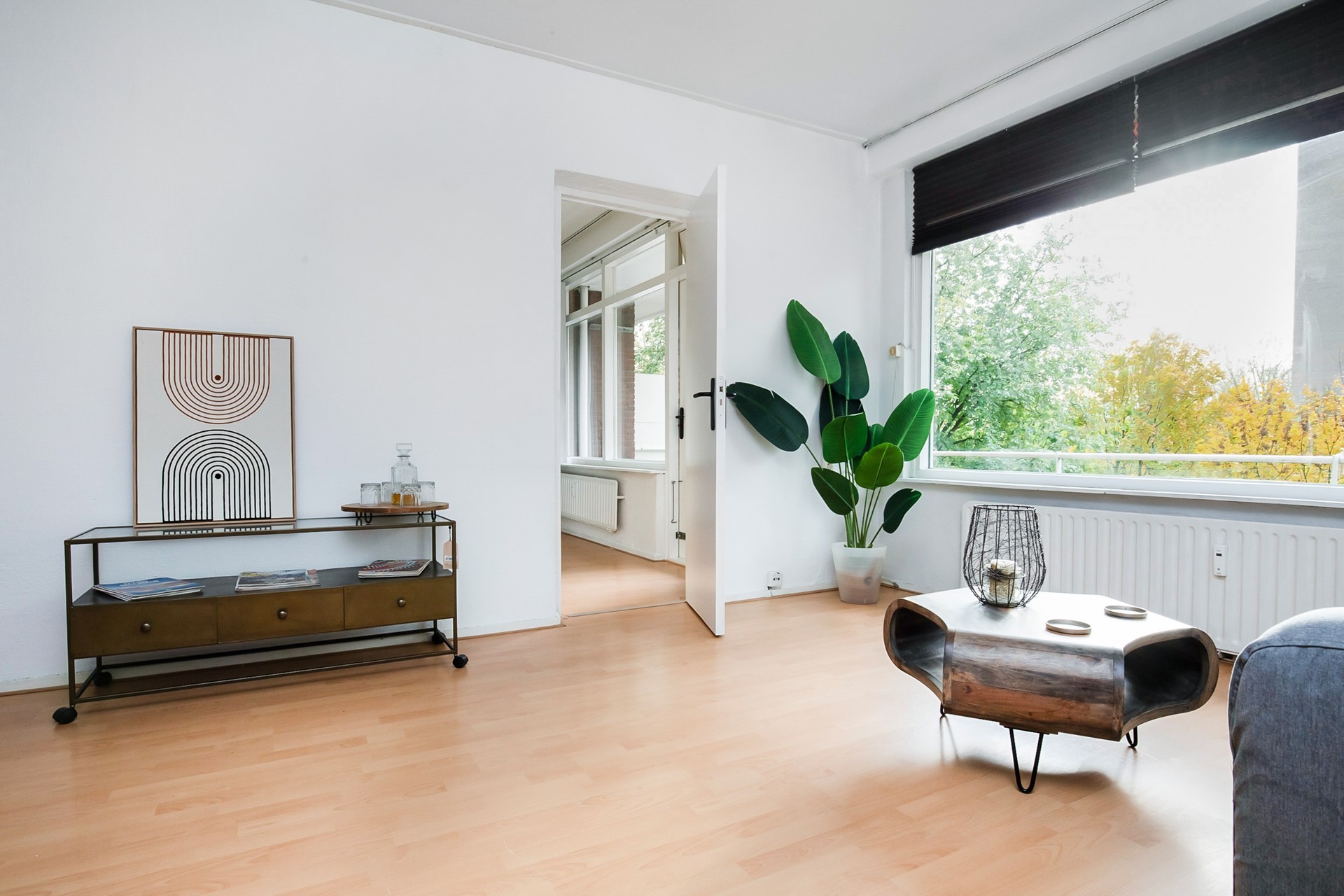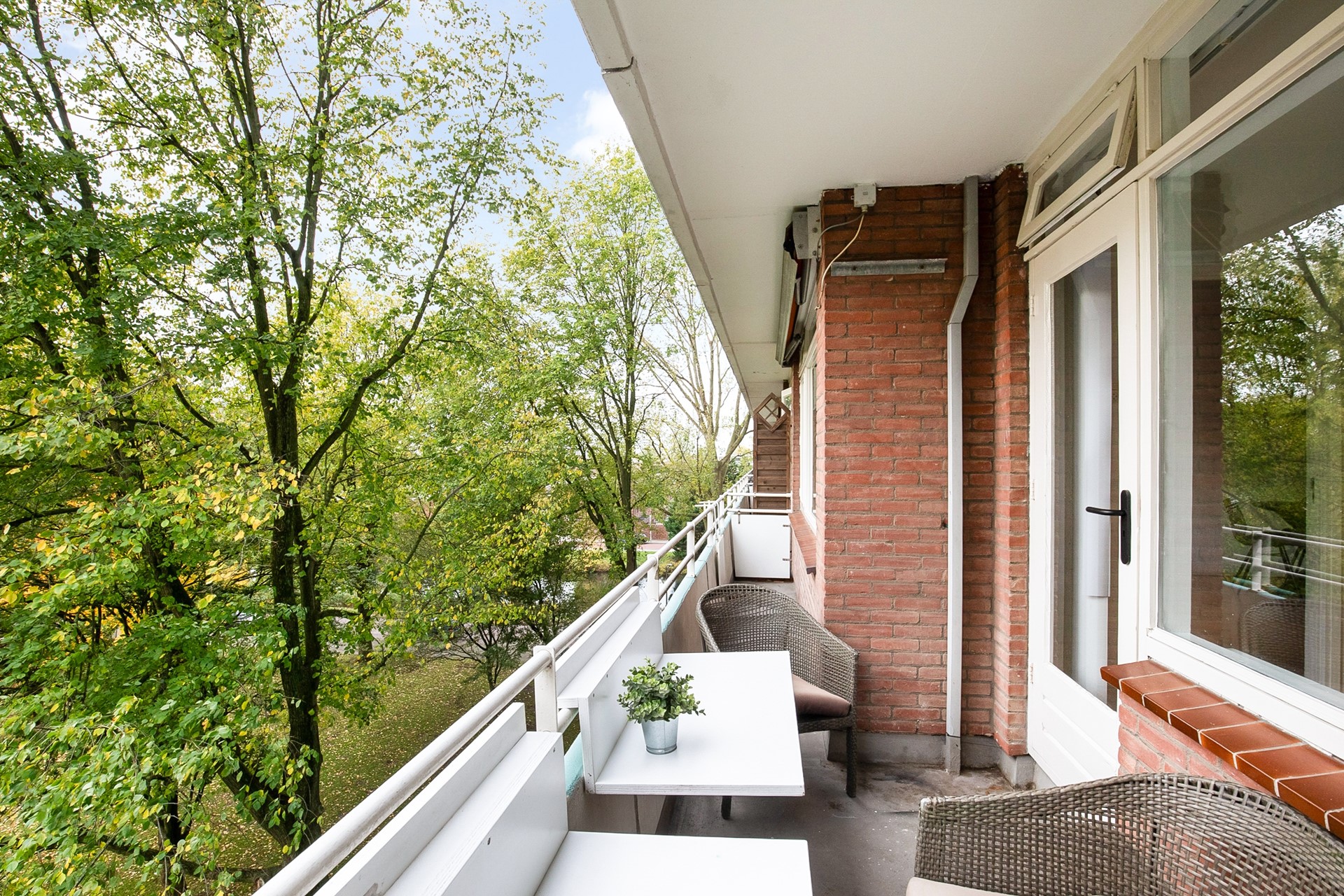 De ruime woonkamer en de derde slaapkamer liggen aan de balkonzijde, waar je geniet van het lichte karakter van de woning en toegang hebt tot het balkon op het noordoosten, heerlijk voor een kop koffie in de ochtendzon.