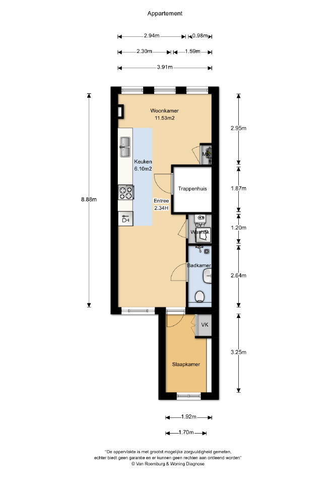 - 38 m² woonoppervlakte, praktisch en efficiënt ingedeeld;