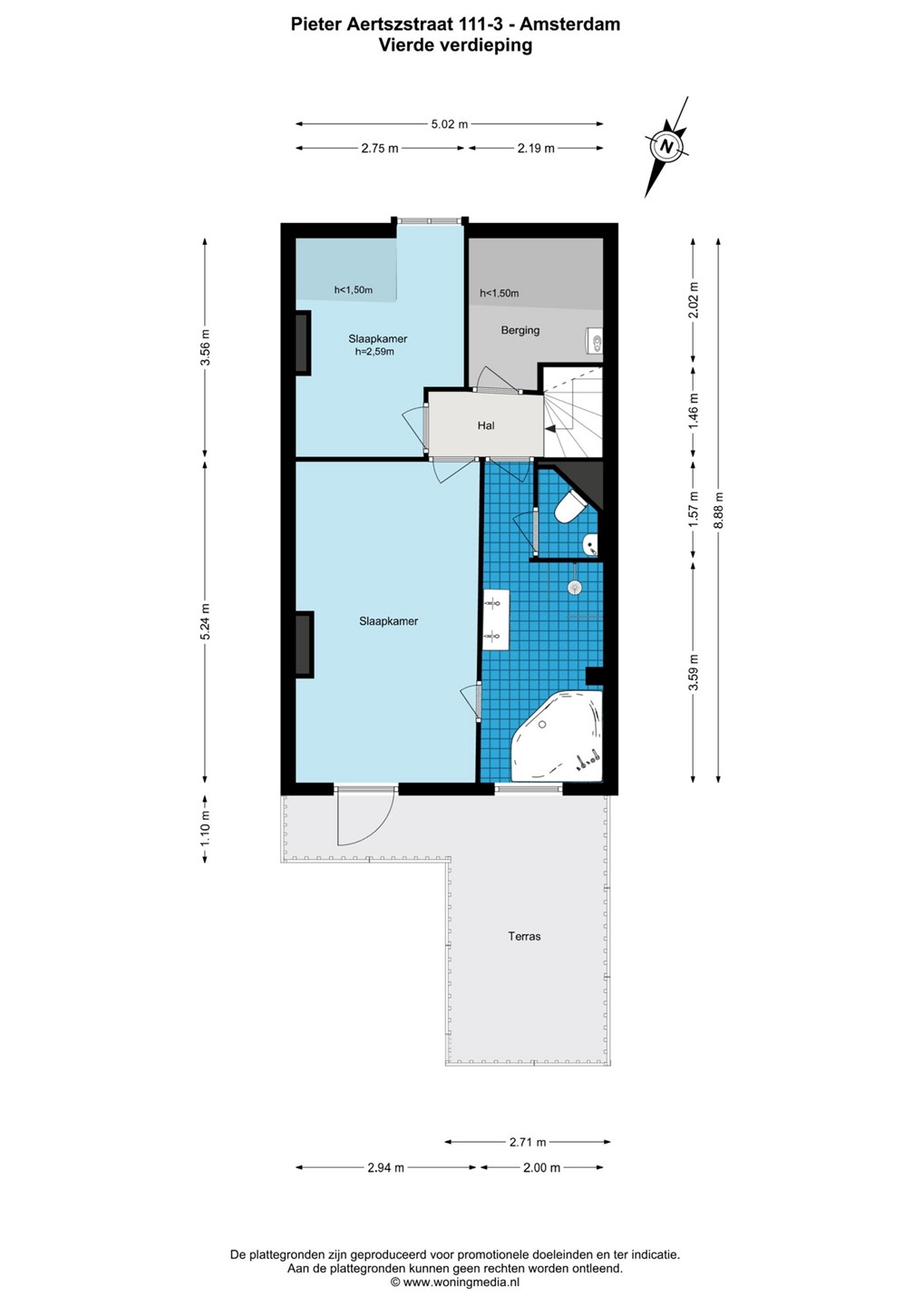 De Meetinstructie is gebaseerd op de NEN2580. Het object is opgemeten door een professionele organisatie en eventuele discrepanties in de gegeven metingen kunnen Listings Amsterdam niet worden aangerekend. Koper verklaart in de gelegenheid te zijn gesteld om een eigen NEN 2580 meting de (laten) uitvoeren.
