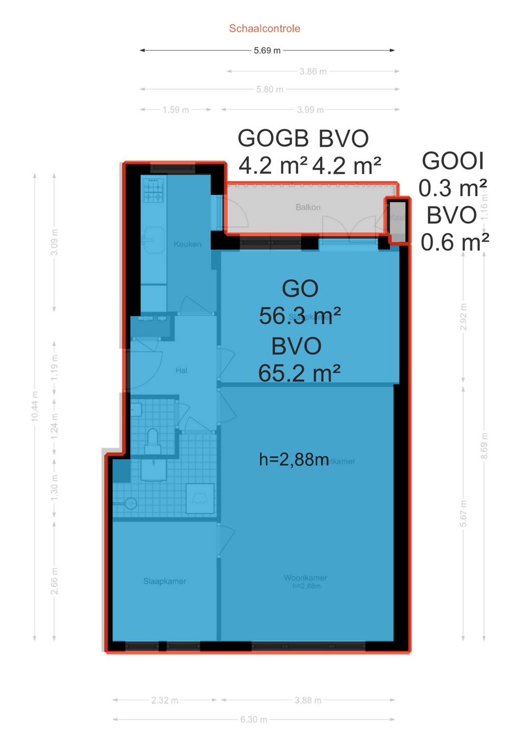 • Woonoppervlak 56m2, conform Meetinstructie NEN 2580