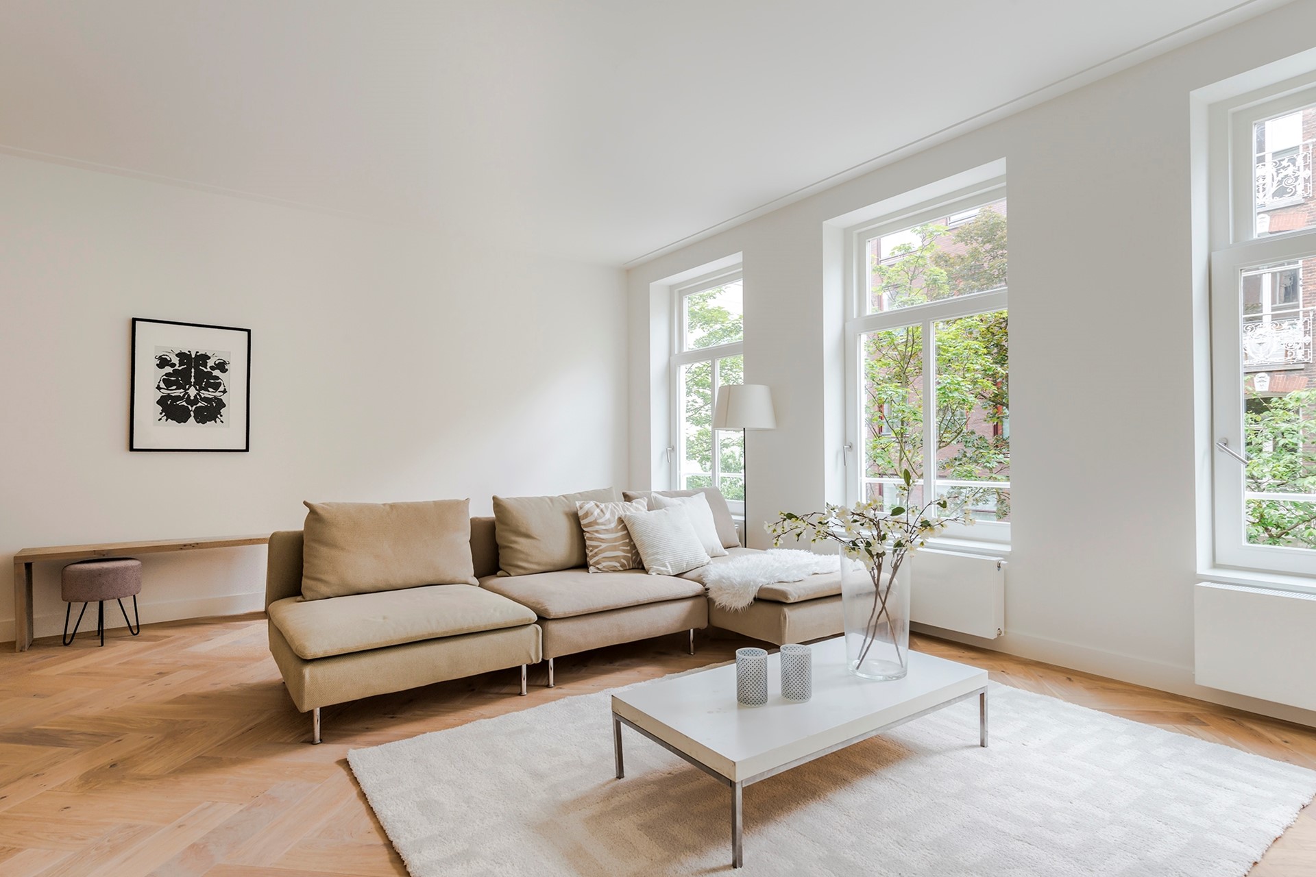 Aan de voorzijde de lichte en ruime woonkamer (maar liefst 6 meter breed) met een schitterende visgraat vloer. De woonkamer is zeer licht vanwege de drie grote ramen aan de straatzijde. De luxe uitgevoerde keuken is voorzien van diverse inbouwapparatuur zoals een vaatwasser, oven / magnetron, koffiemachine, koel- vriescombinatie, oven en een natuurstenen aanrechtblad.