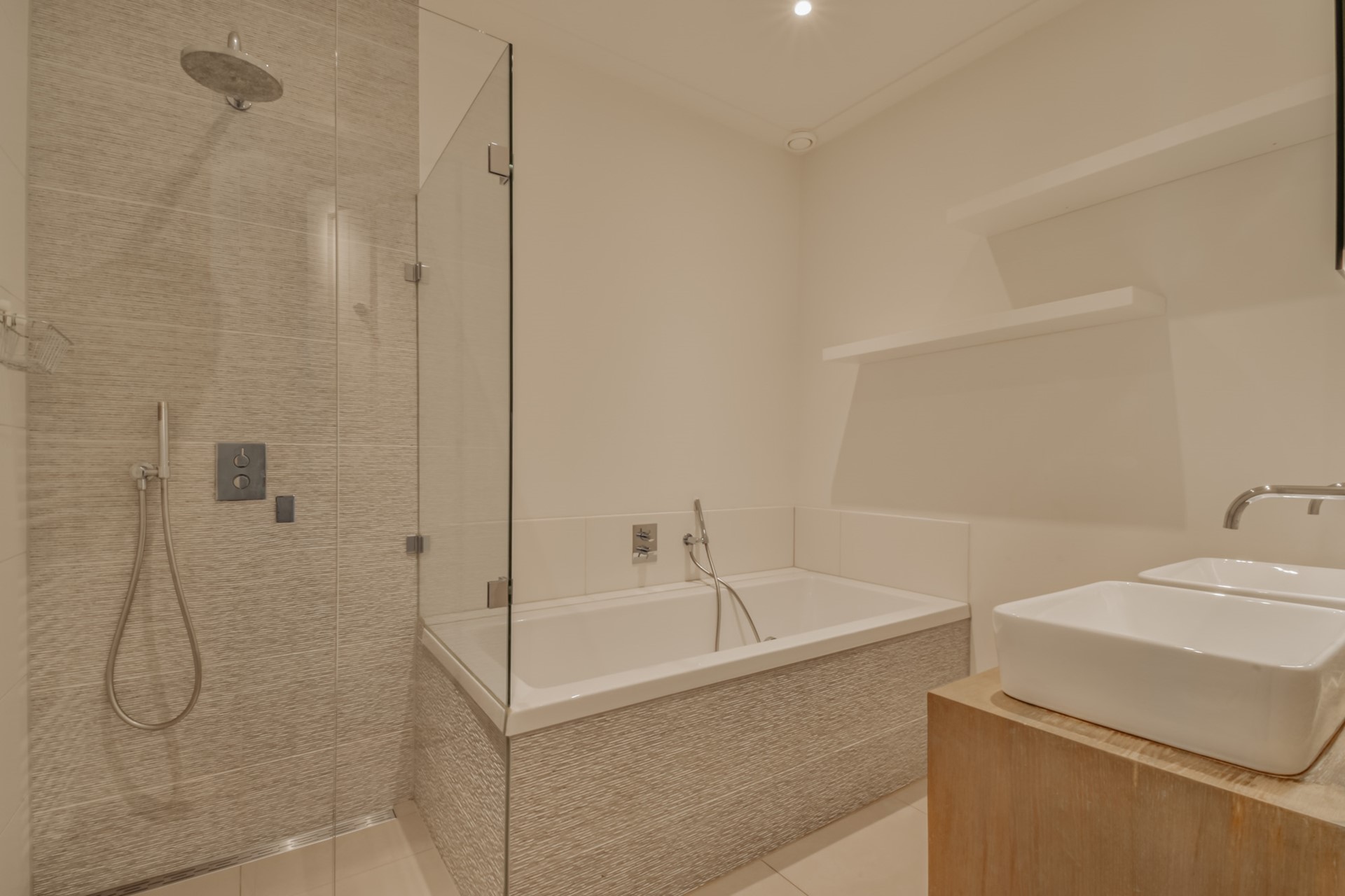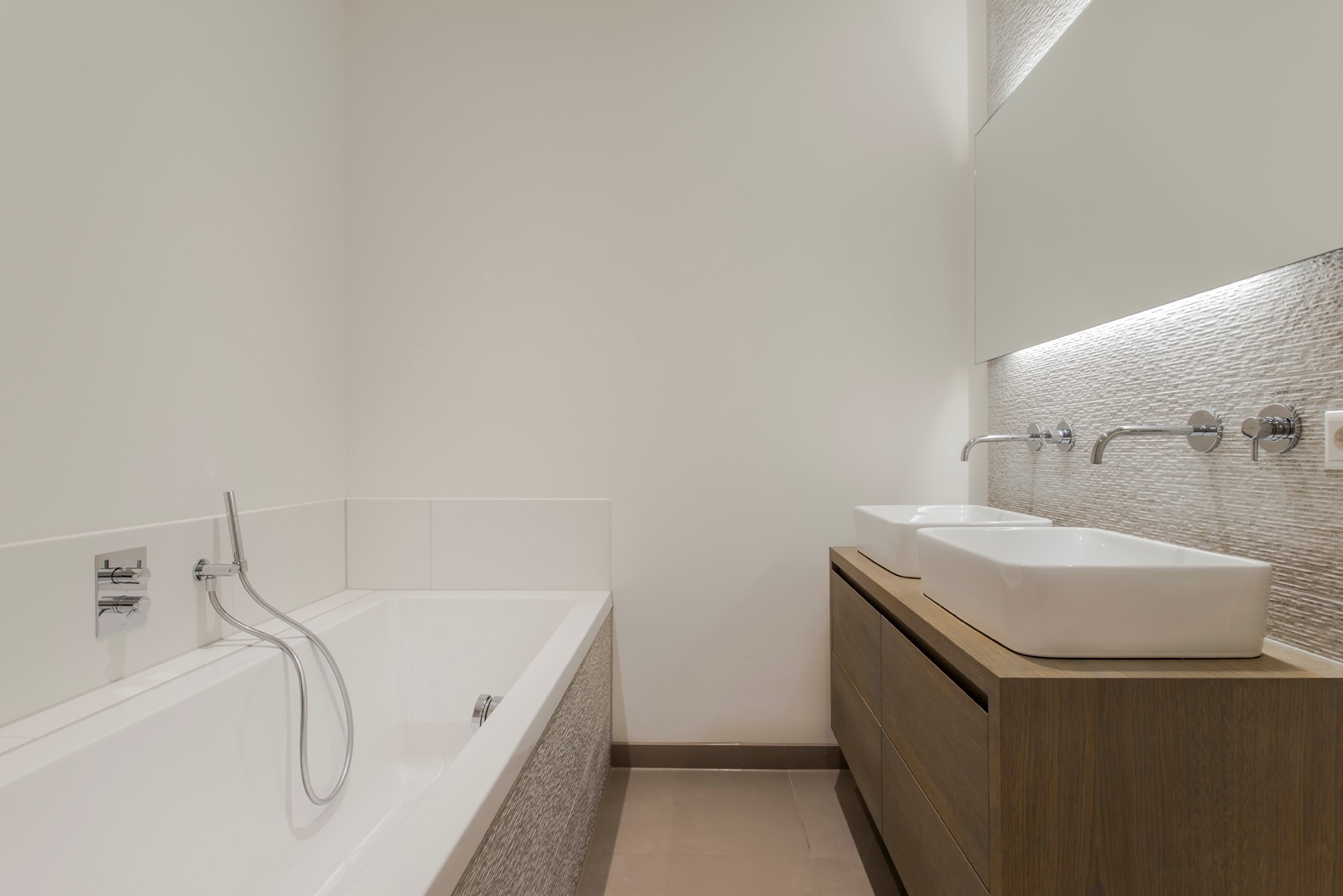 De luxe badkamer is centraal gesitueerd en voorzien van een wastafelmeubel (dubbele wastafel), inloopdouche, ligbad en een handdoekradiator. Inpandige berging met opstelling voor wasmachine en droger. Voorts beschikt de woning over een separaat toilet met fonteintje.