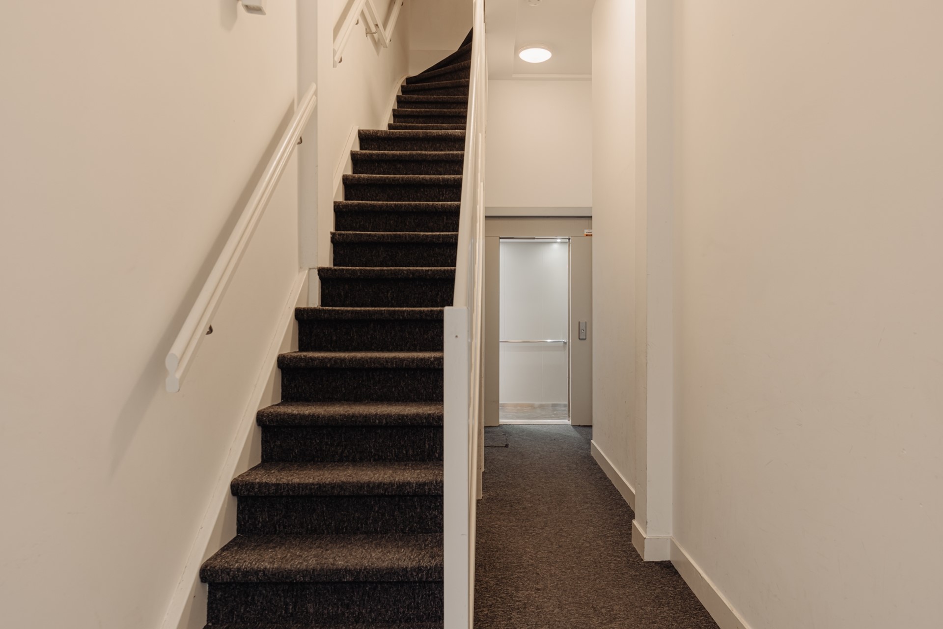 Via een fraai gemeenschappelijk trappenhuis bereikt u het appartement op de eerste verdieping. Daarnaast is een lift aanwezig welke direct in de woning uitkomt.