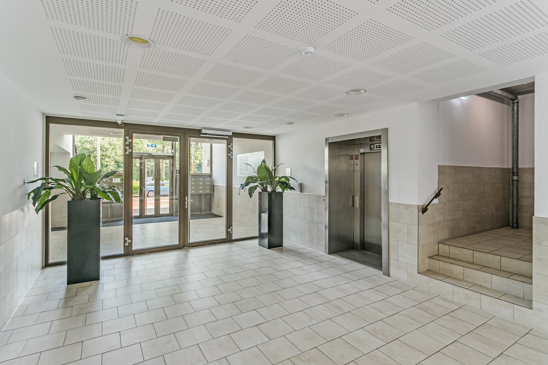 Middels de lift bereikt u de vijfde verdieping van het appartementencomplex. Bij binnenkomst in het appartement bereikt u direct de hal welke u toegang verschaft tot vrijwel alle vertrekken in de woning.