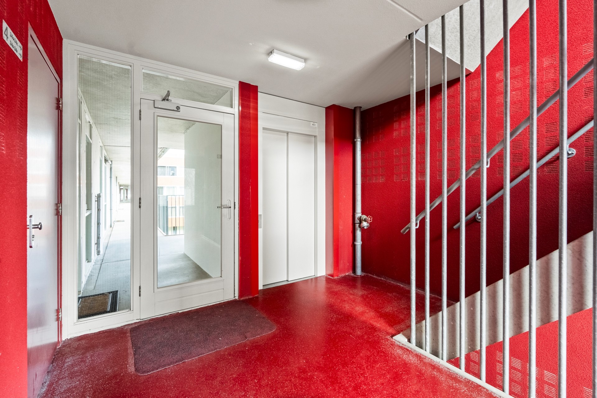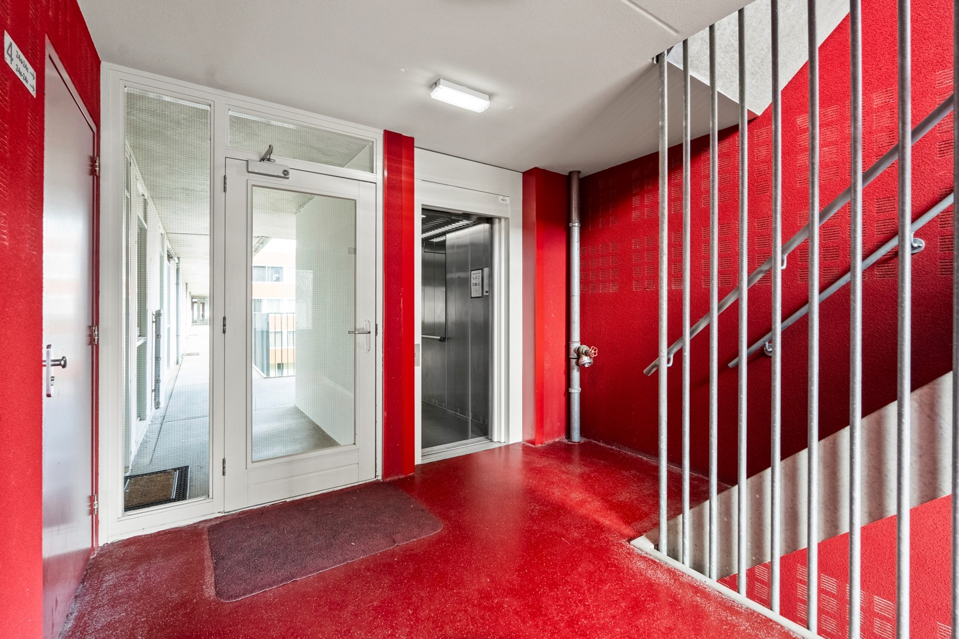 Het appartement maakt deel uit van een goed onderhouden complex met een beveiligde entree, video-intercom en twee liften. De berging en eigen parkeerplaats bevinden zich in de onderbouw. Het appartement zelf ligt op de 4e verdieping, bereikbaar per lift of trap.