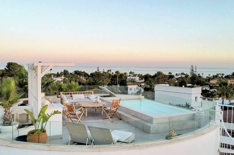 De villa heeft een prachtig dakterras met zwembad en uitzicht over de kust naar Gibraltar en Afrika. Het is ideaal voor het organiseren van feesten of gewoon om te genieten van het adembenemende uitzicht. De eerste verdieping, waar u de woonkamer met open keuken vindt, biedt ook een fantastisch uitzicht op zee. Op de begane grond, die uitkijkt op de tuin en het infinity zwembad, zijn er 2 slaapkamers en 2 badkamers. In de semi-kelder is er een 3e slaapkamer en de garage met een elektronische poort met afstandsbediening. Alle slaapkamers hebben luiken, airconditioning en verwarming, op elektriciteit. Zowel het zwembad op het dak als het zwembad in de tuin zijn verwarmd.