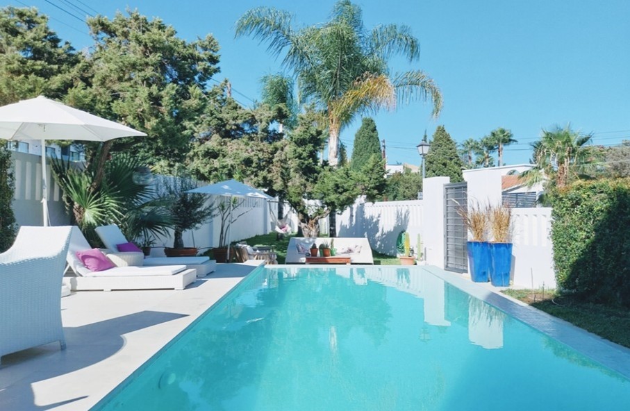 Deze iconische villa ligt in de privé-urbanisatie Marbesa, dicht bij het strand, aan de oostkant van Marbella. Het ligt op 400 meter loopafstand of 10 minuten lopen van de Middellandse Zee en het strand, op 1,5 km van het strand en de beschermde duinen van Cabopino en op 1,9 km van de hotels Marriot en Don Carlos en Nikki Beach Marbella. Marbesa is een rustige en prestigieuze wijk die bekend staat om zijn prachtige kustlijn en de nabijheid van Marbella.