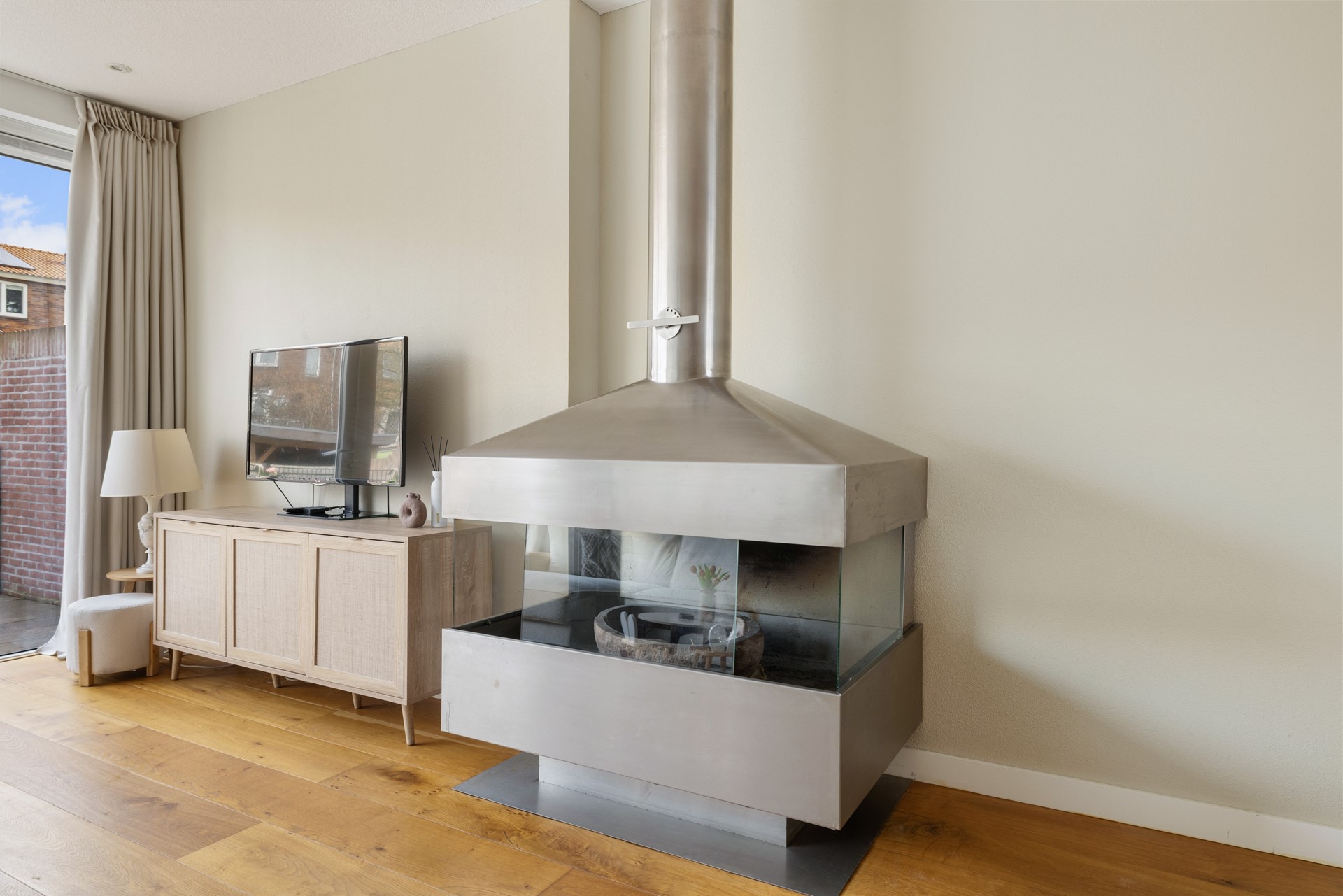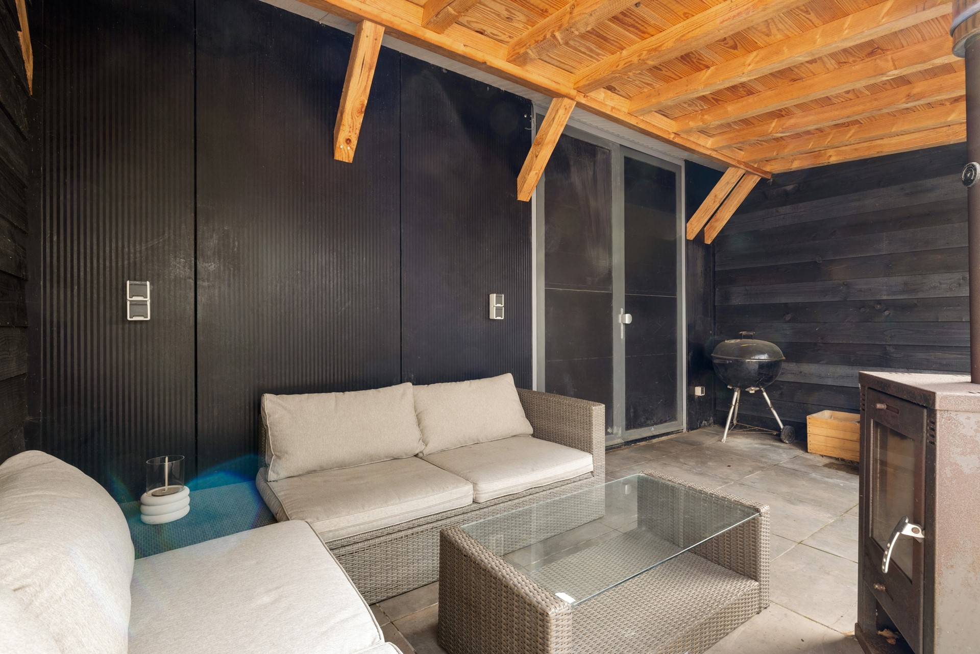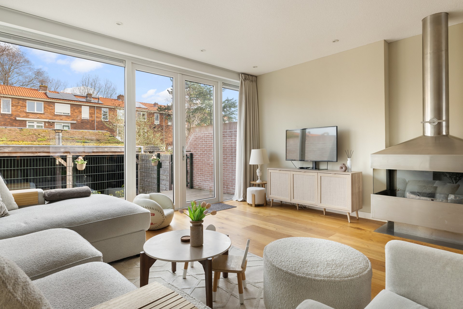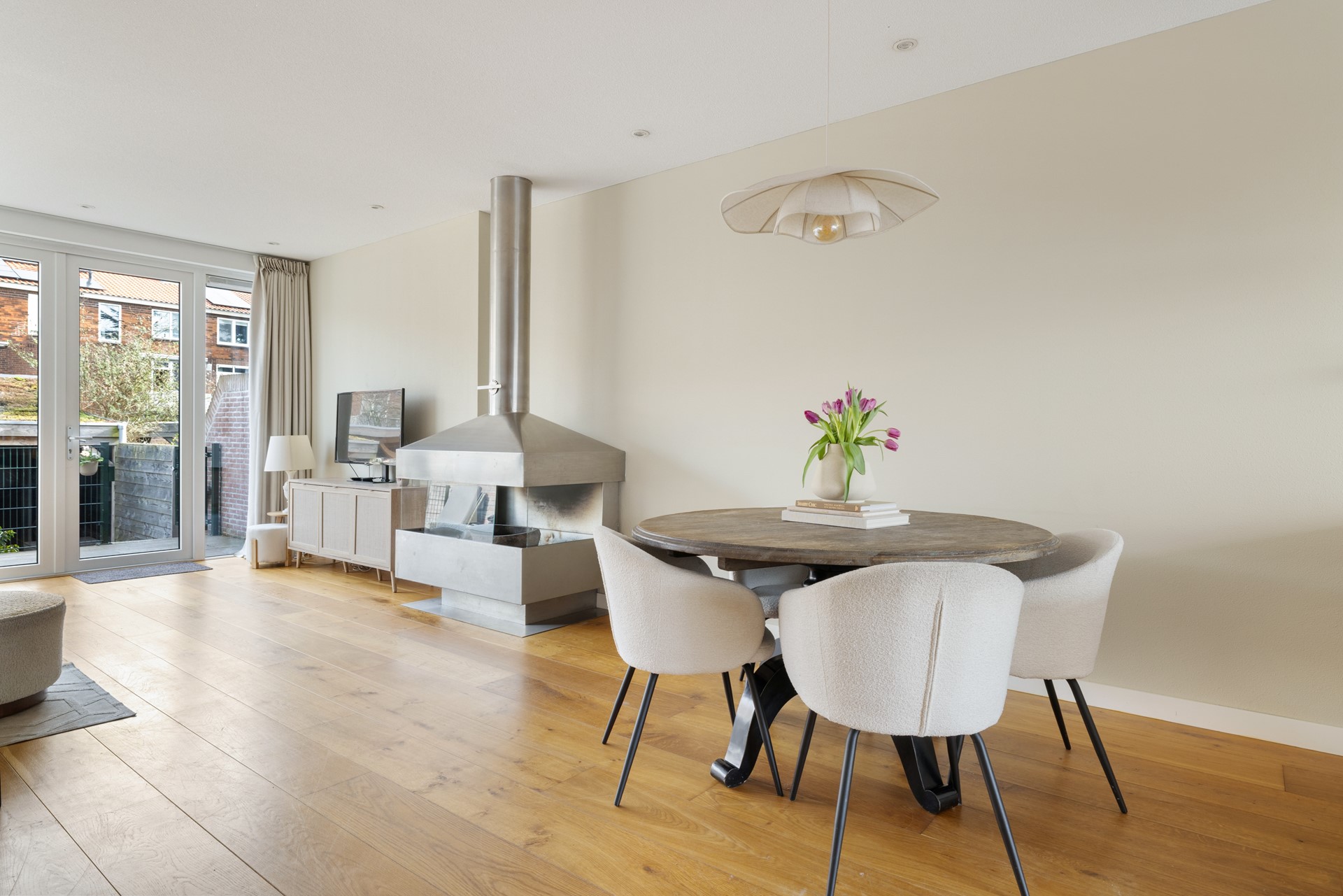 Een bijzonder pluspunt is de buitenruimte met open haard, waardoor je het hele jaar door kunt genieten van gezellige momenten buiten — zelfs op de koudere dagen. Binnen en buiten lopen hier moeiteloos in elkaar over.