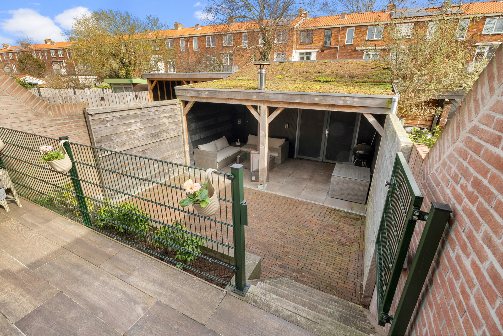 The deep backyard of approximately 50 square meters offers sun throughout the day and plenty of privacy. It is the perfect place to relax and enjoy outdoor living. The garden also features a covered area, a practical storage shed, and rear access.